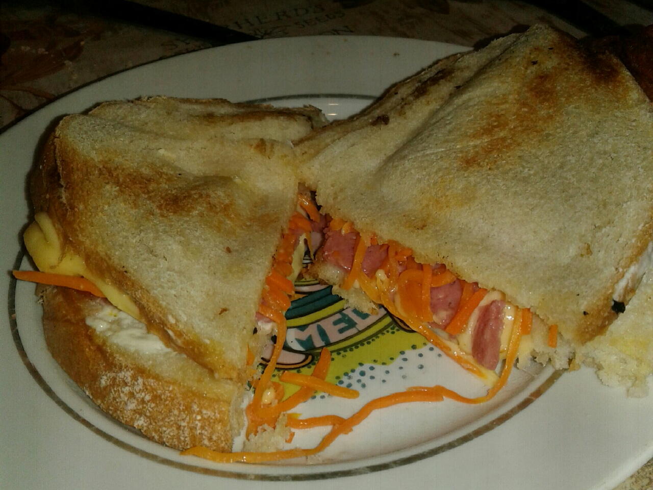 Накрыть второй половинкой хлеба и зажарить в бутерброднице. Можно на сковородке