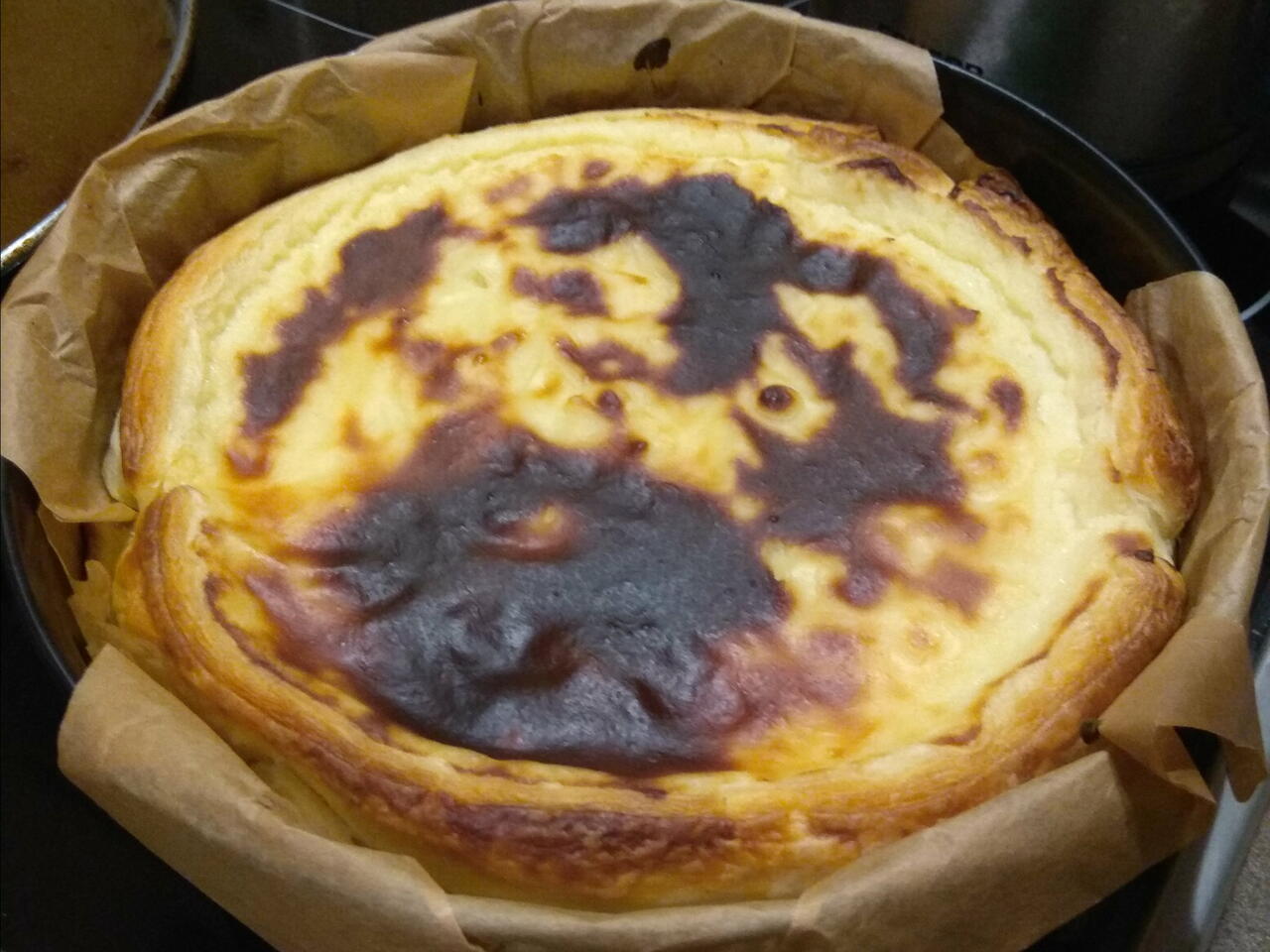 Залить крем, аккуратно нагнуть бортики и выпекать при 180°С 35 - 40 минут. Охладить и убрать в холодильник. Подавать холодным.
