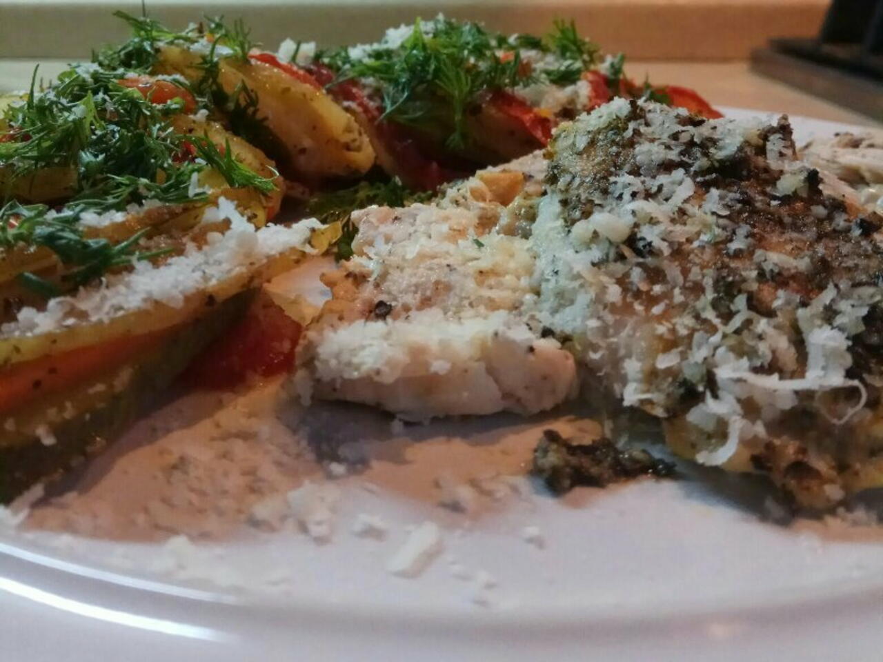 Выложить и присыпать пармезаном и при желании свежими травами какие есть но не так чтобы перебивали вкус тех что добавляли во время готовки