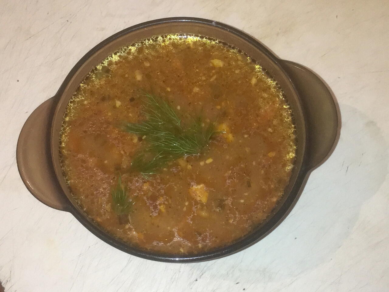 Содержимое сковороды вывалить в кастрюлю, добавить специи и варить ещё 5 мин