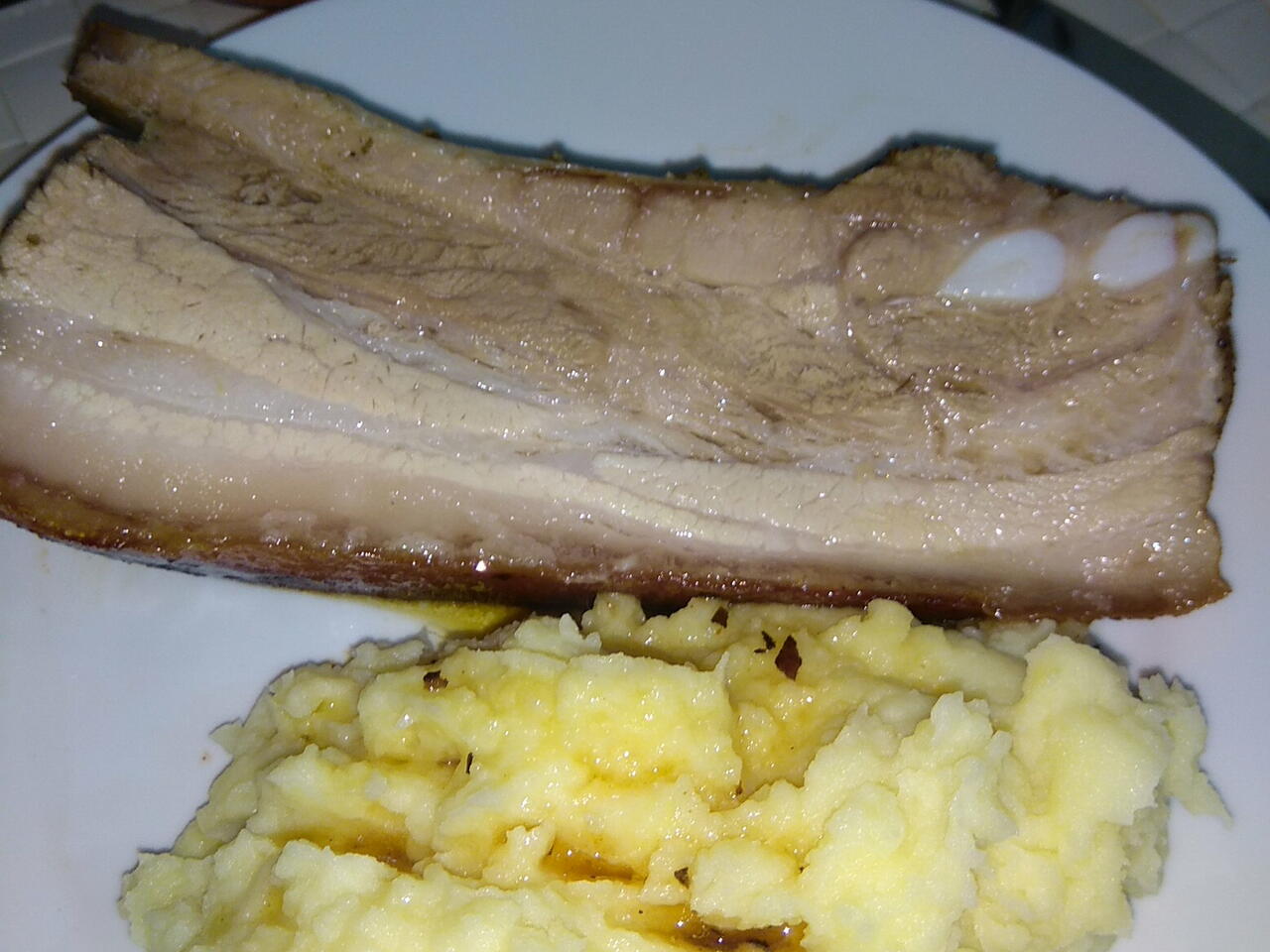 Чеснок 2 раза пропустить через пресс, лавровый лист поломать пальцами в маленькие кусочки, добавить розмарин, соль, перец и перемешать. Обмазать смесью мясо со всех сторон, завернуть в пакет, пищевую пленку и убрать в холодильник на сутки