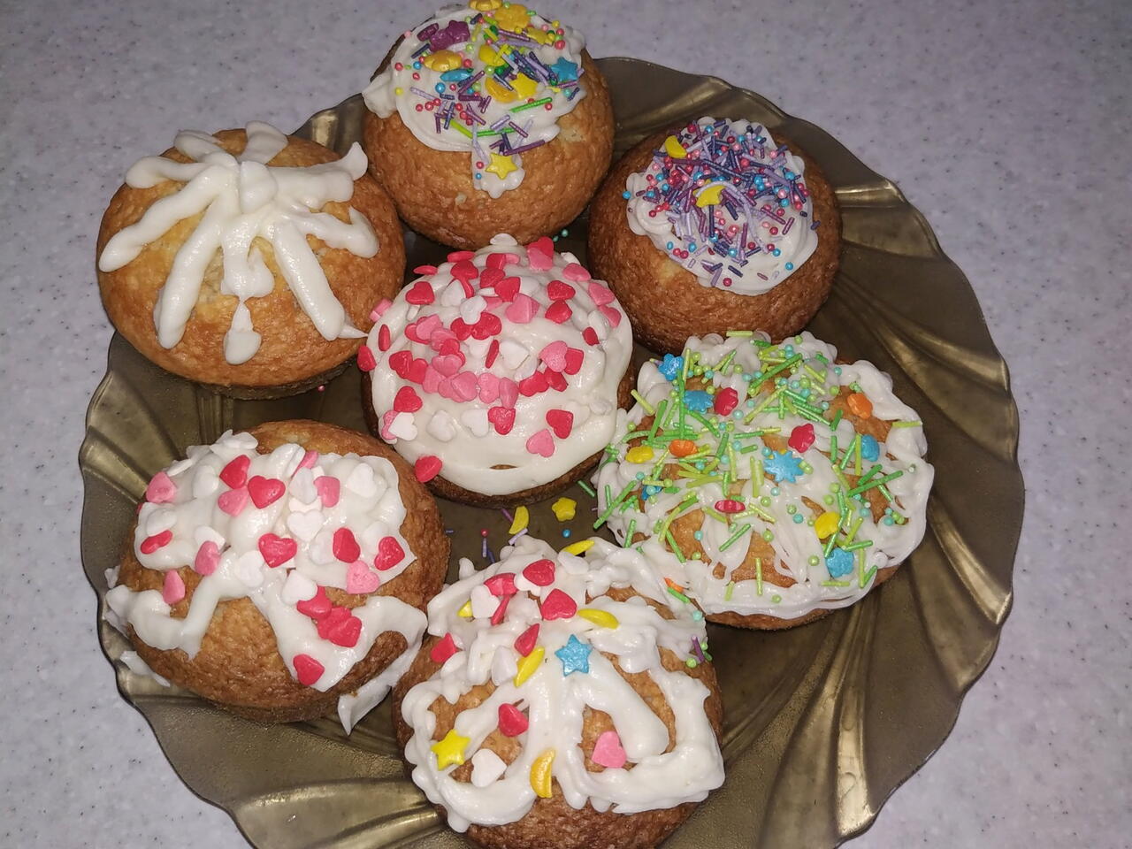 Выпекать кексы при 190 градусах около 20 минут. Готовые кексы перенести с противны на решетку и оставить до полного остывания.