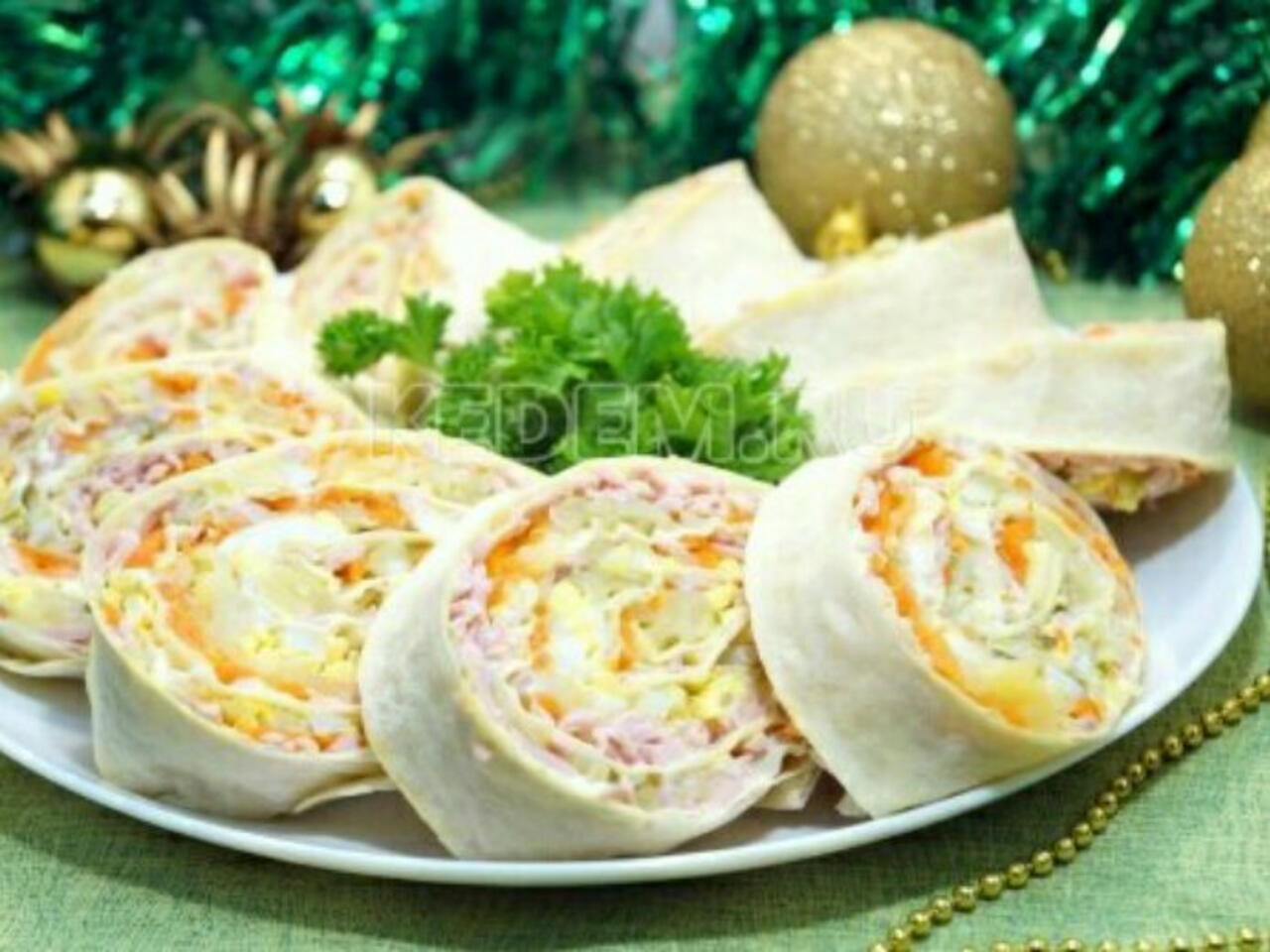 «Оливье-рулет» прекрасная закуска-салат для новогоднего стола, точно не останется до конца праздника.