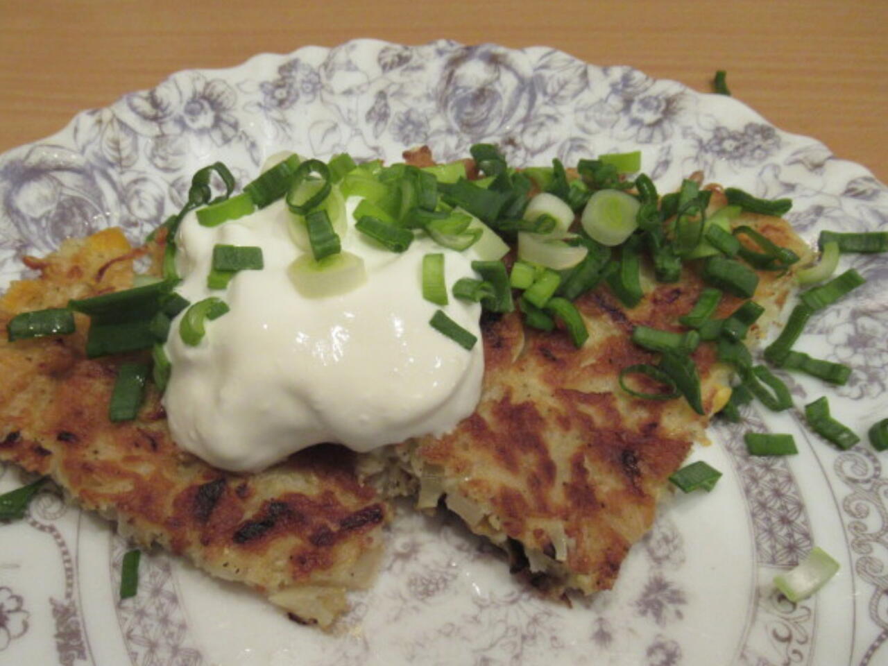 Со второй стороны жарим меньше времени. Выкладываем на тарелку, нарезаем и едим со сметаной.