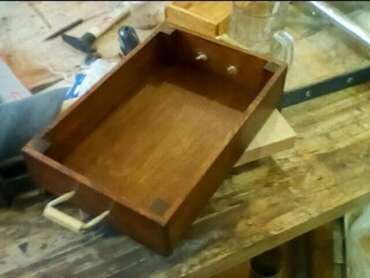 Выпиливаем фанеру под внешние размеры коробки и прибиваем