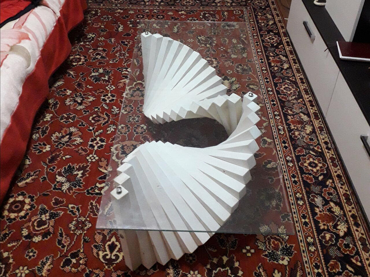 Проект интересный,но по перечисленным мной выше причинам его можно рассматривать как очень интересную идею, как эскиз. Считаю просто технически необходимым наличие не только 4-х точек опоры,но по всему периметру (стекло!) И защитное покрытие тоже необходимо.