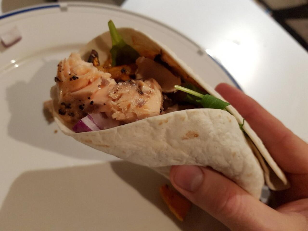Laxwrap Med Tomatpestoröra Och Ugnsrostade Rotsaker