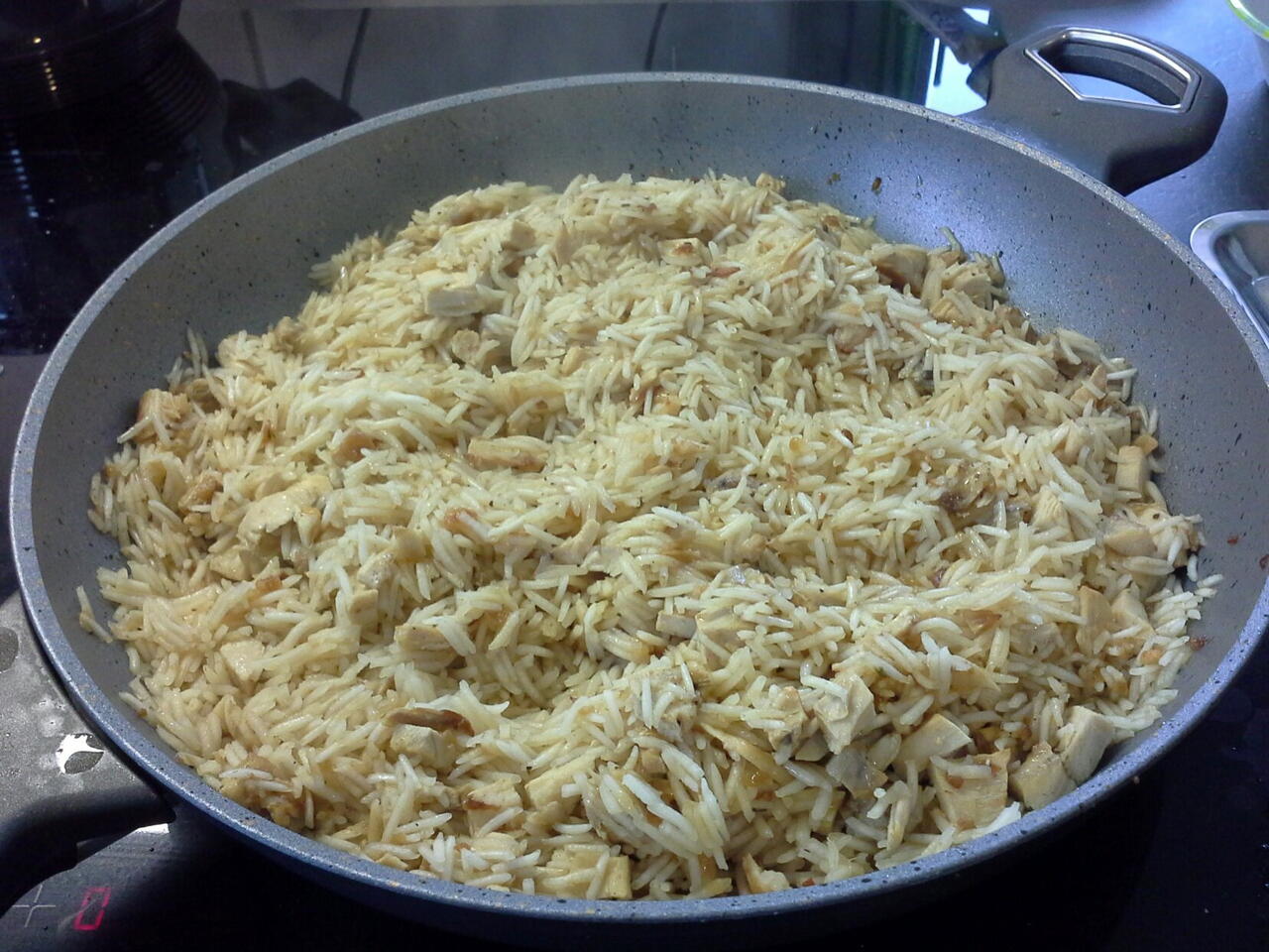 Dodamo riž in ponovno pustimo, da se malo popraži
