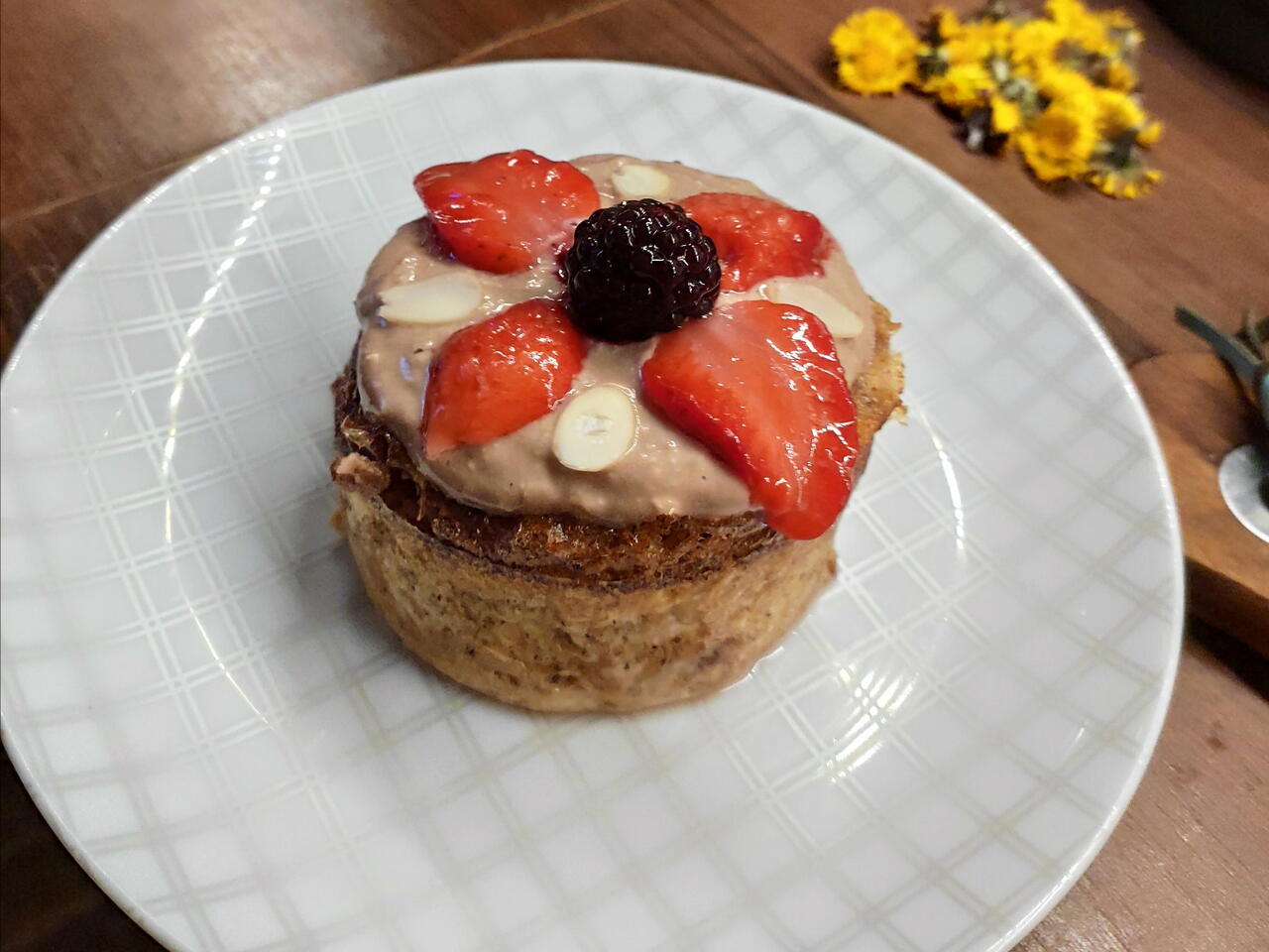 Koláč s jahodami a jogurtovo-arašidovou polevou