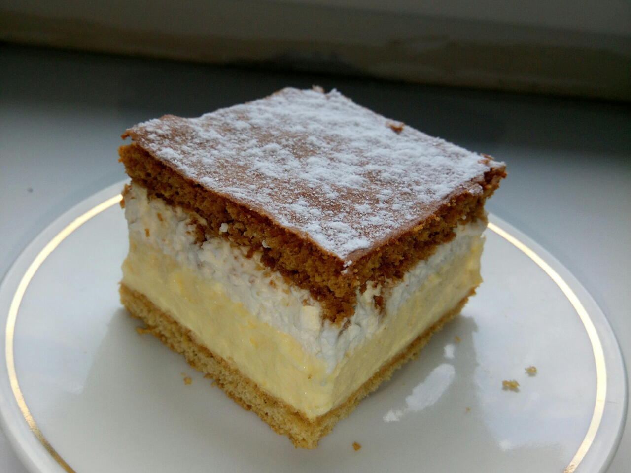 Navrch dáme druhý plát cesta hladkou stranou hore. Posypeme práškovým cukrom.