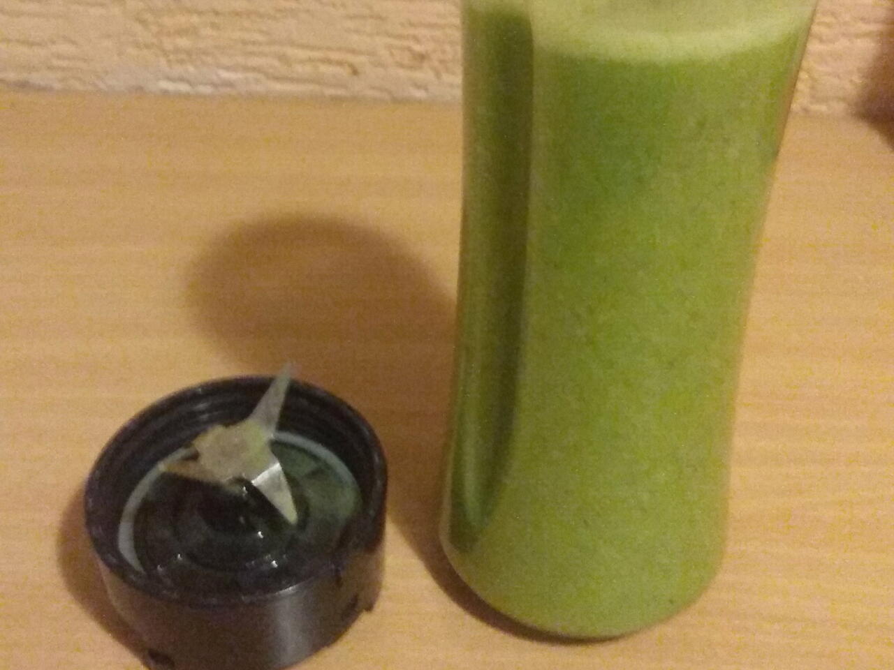 Všetko vložíme do smoothie pohára a zalejeme čistou vodou po úroveň kiwi a špenátu