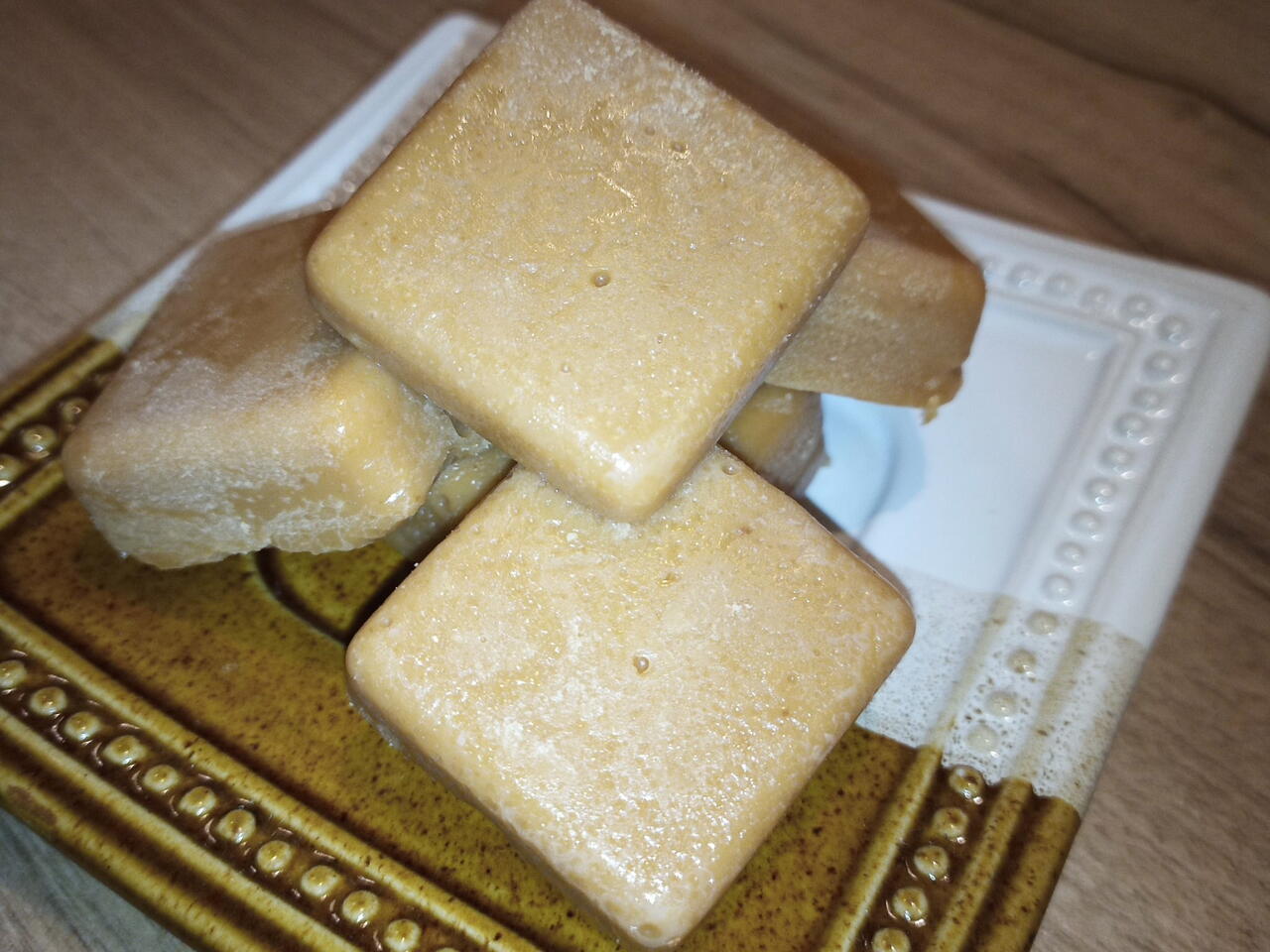 Opäť vylejeme do formičiek na ľad, alebo na papier na pečenie a vykrajujeme, alebo režeme na kocky.