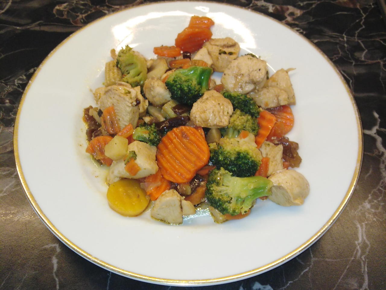 Kuracie mäso nakrájať na kúsky a zmiešať vo woku s olejom a nechať 1 h stáť