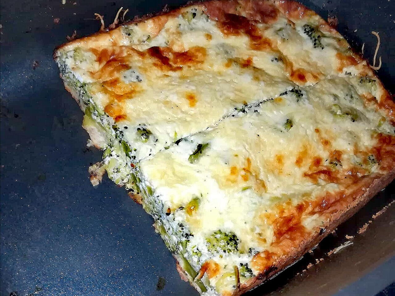 Brokolicu umyjeme, rozoberieme na ružičky a uvaríme v osolenej vode 5 minút. V nádobe rozšľaháme smotanu, mlieko a vajcia. Pridáme nastrúhaný syr, soľ, korenie a premiešame.