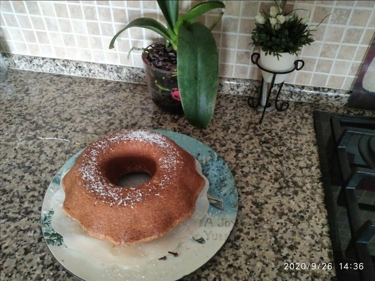 Fırını 180 derecede ısıtın sonra kek kalıbı nı yağlayın yarım saat kabarana kadar fırının kapağını açmayın soğuması için bir sun tabağına alın sonra üstüne pudra şekeri yada Hindistan cevizi serpin