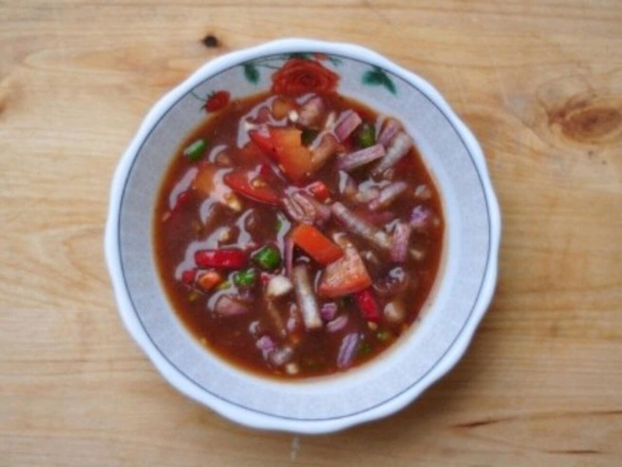 masukkan asam jawa berserta air ke dalam mangkuk lain. gaulkan asam tersebut sehingga sebati dengan air. tapis air asam. masuk bersama bahan tadi. (buang biji kalau xnak tercekik)