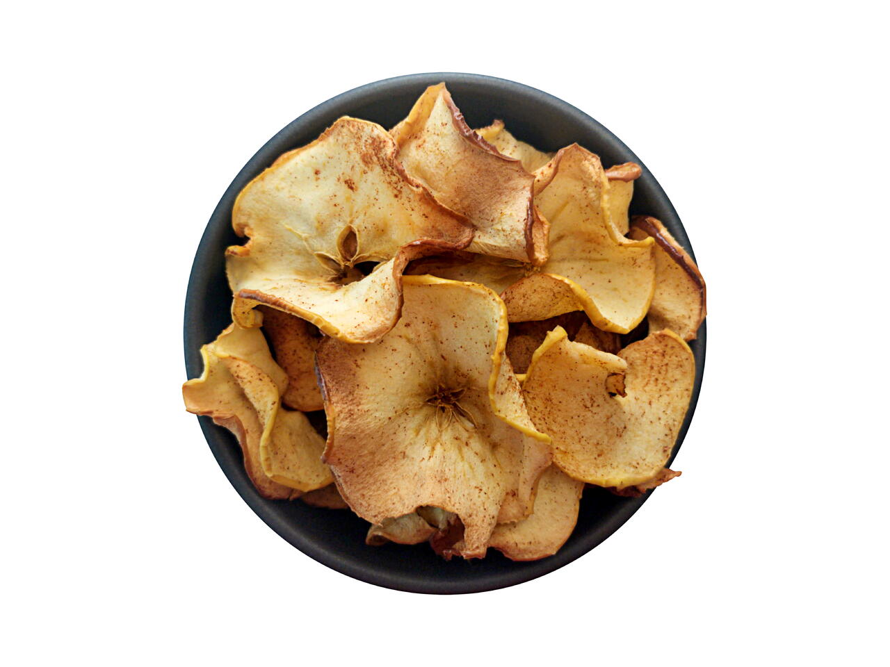 After 5 minutes, toss the apple slices with tongs. Cook or another 5 minutes. After 10 minutes, remove any chips that look crispy and continue cooking for 2-5 minutes checking every minute to avoid burning. Repeat with the rest of the apples.