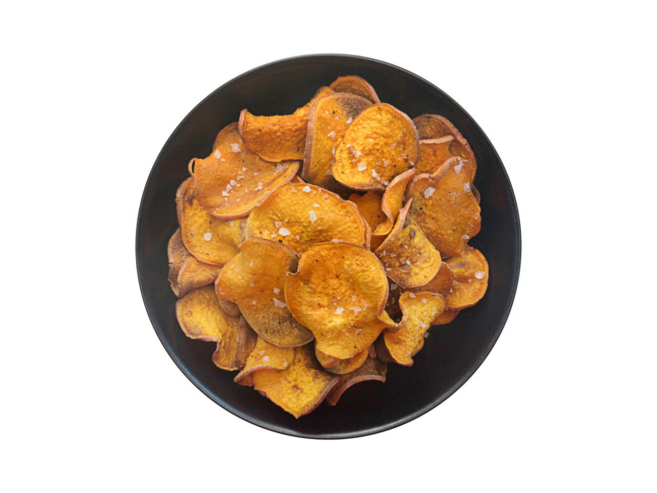 Air fry the sweet potato in 2 to three batches. Layer and stagger the potato slices about 3 layers at a time. You will fry them for a total of 12-15 minutes per batch. Start by frying for 5 minutes and then stirring.
