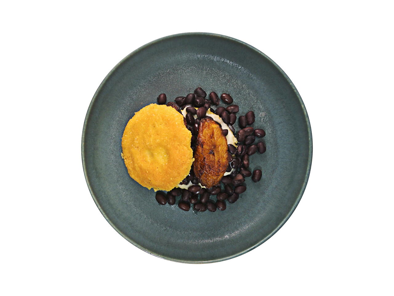 Add the black beans and maduros and sandwich inside the arepa! Enjoy!