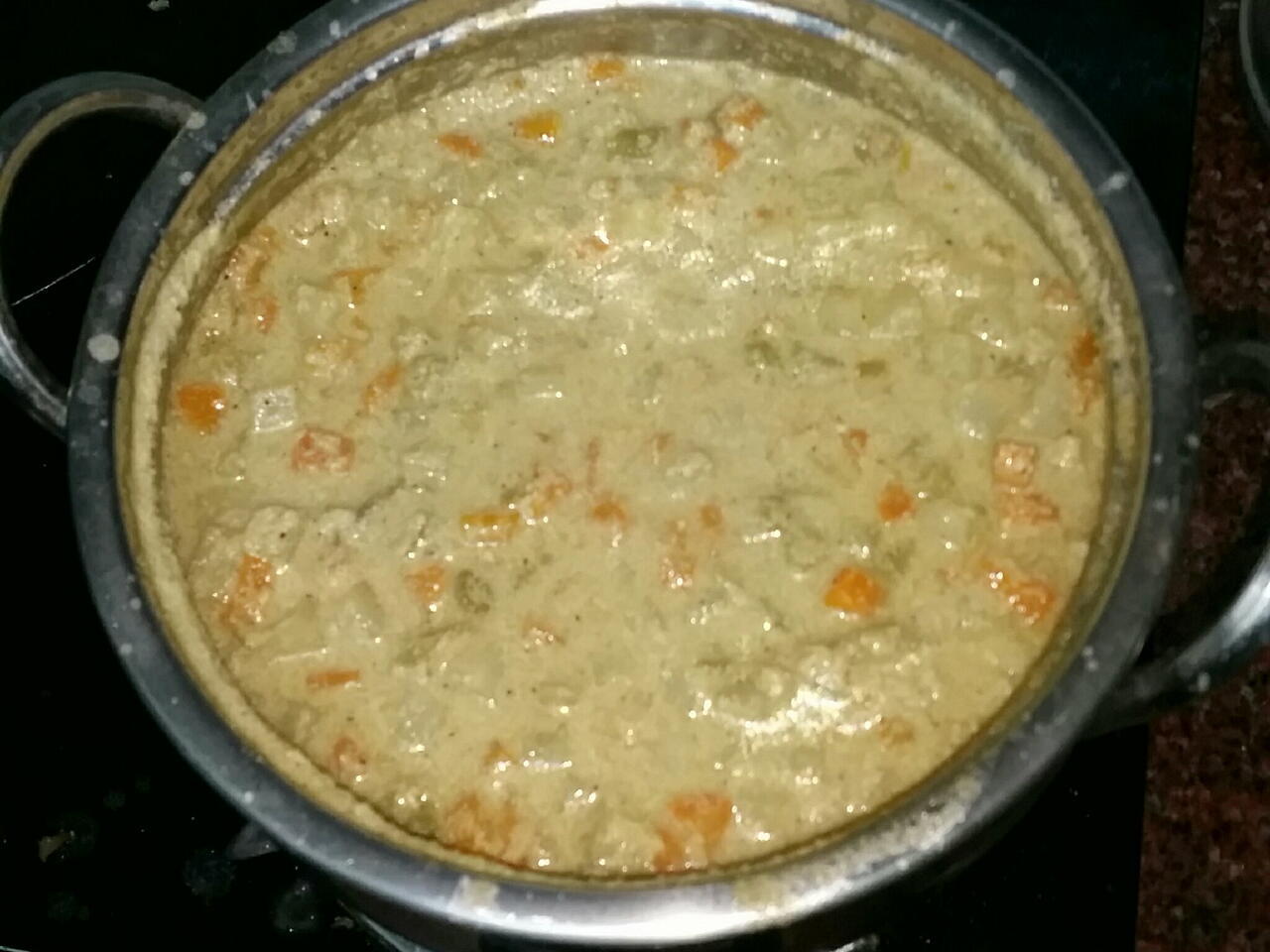 Cook until everything is incorporated. (If it turns out too watery, make a paste with 1 tsp of rice flour + the water from the boiling gravy and add. It will thicken in 2 minutes)