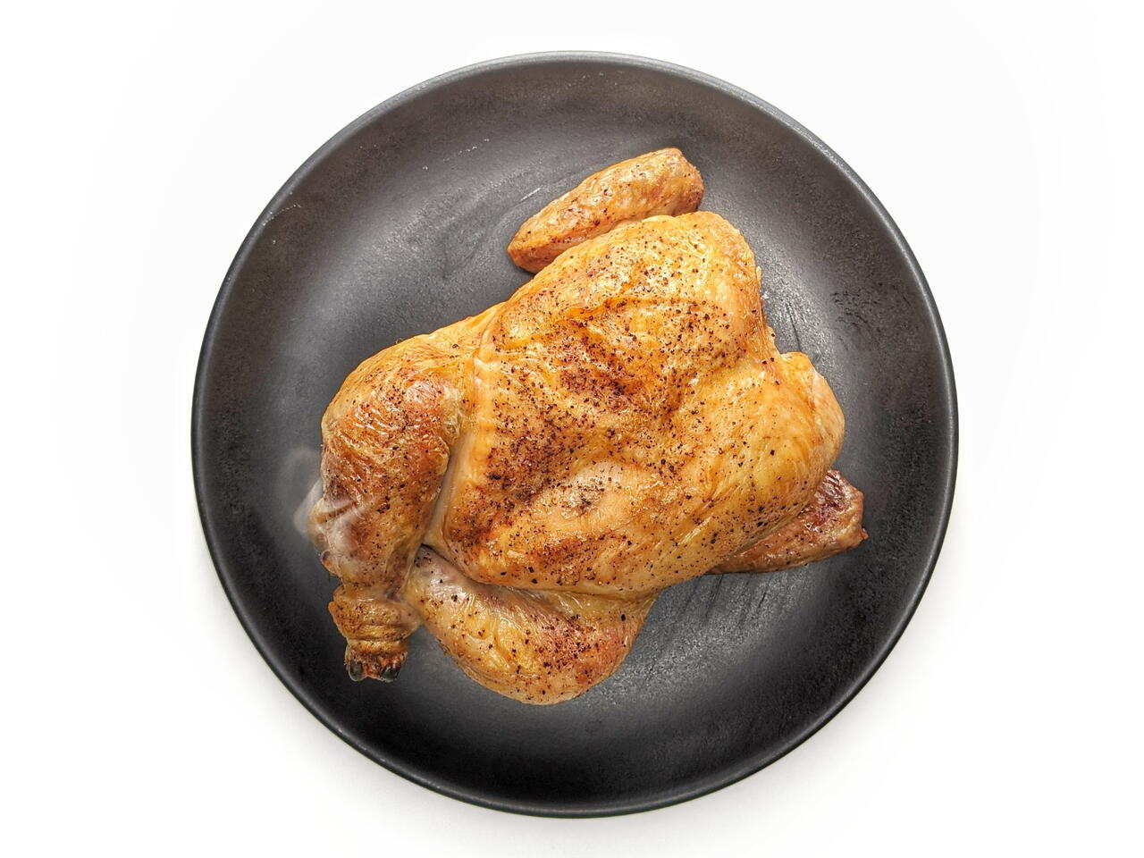 Give the chicken an even dusting of salt and black pepper. Feel free to add any other seasonings you have on hand. To take it to the next level, you can even tuck some herbs or lemon wedges inside the cavity or under the skin. For crispier skin, you can spread softened butter under the skin.