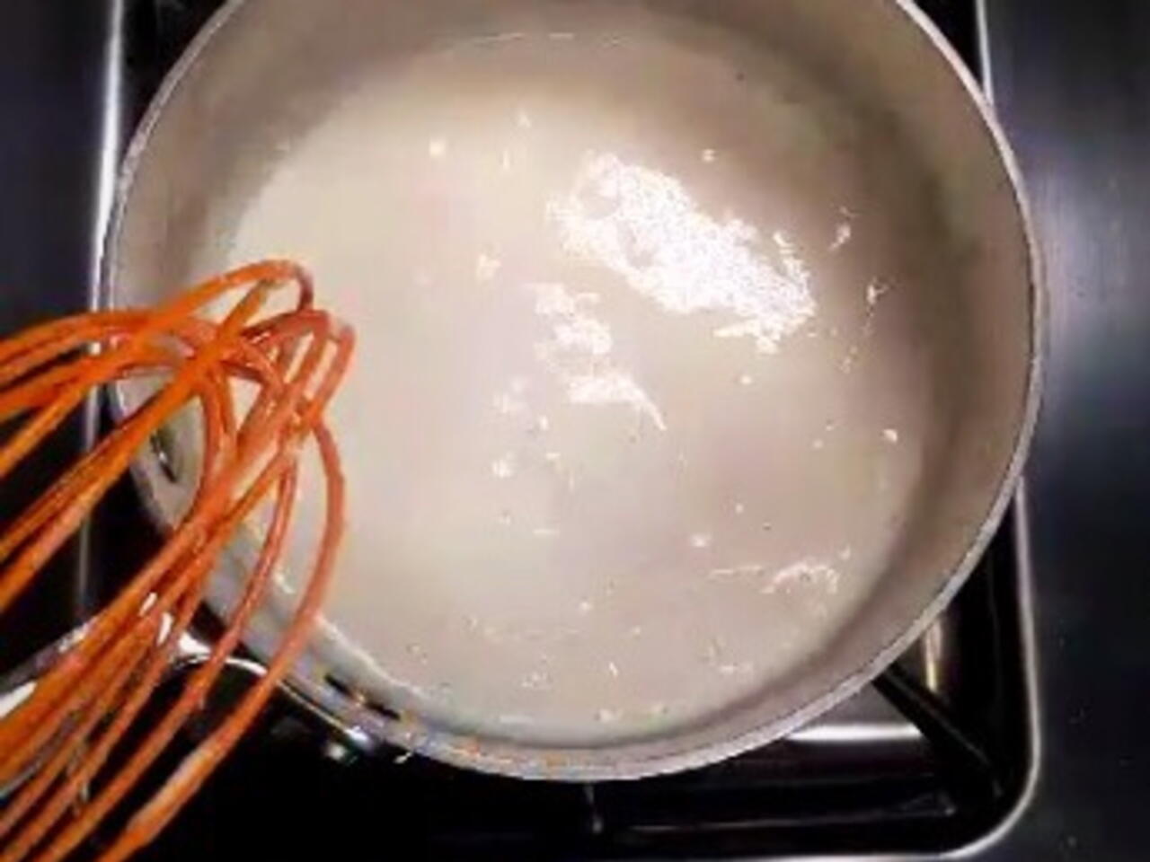 Keep whisking, with the saucepan over medium heat.