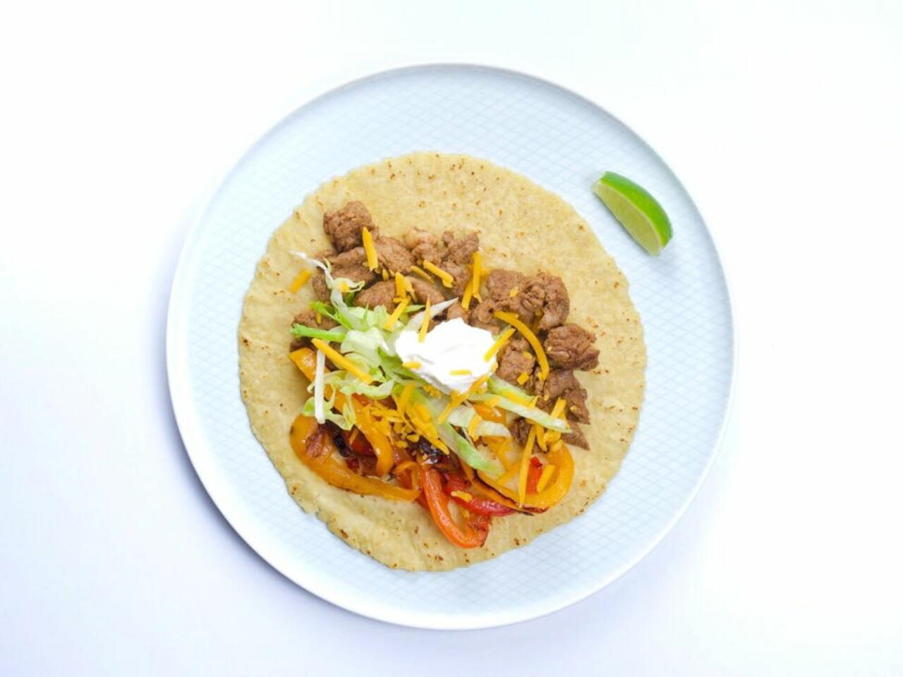 When the oil begins to smoke, add the fajita strips. Stir over high heat until the meat is browned and crispy.