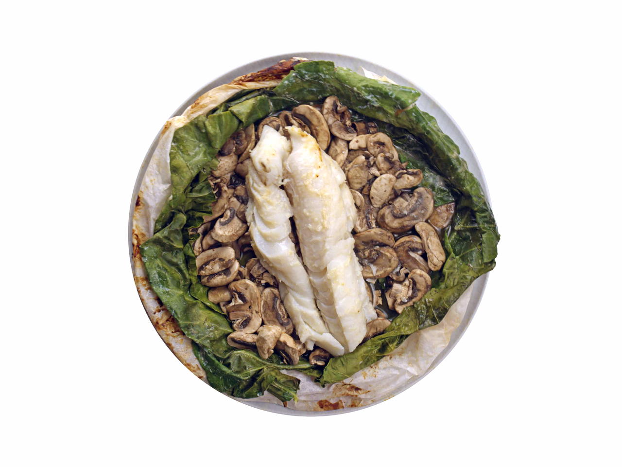 Place the cod over the mushrooms. Pour excess marinade over the top.