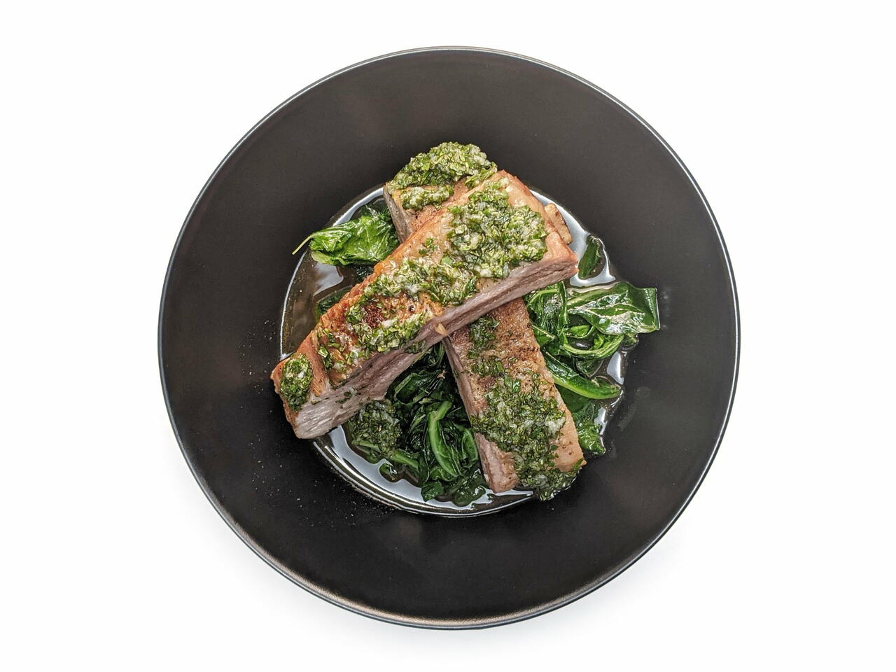 Normally, ribs are a significant commitment. This is a different take. There's no dry rub here, no smoker, just a slow braise to break down that tough connective tissue. And all of the flavor you need from a pungent chimichurri.