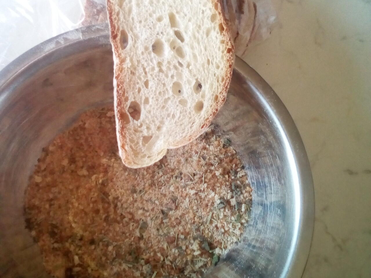 Old bread made into crumbs