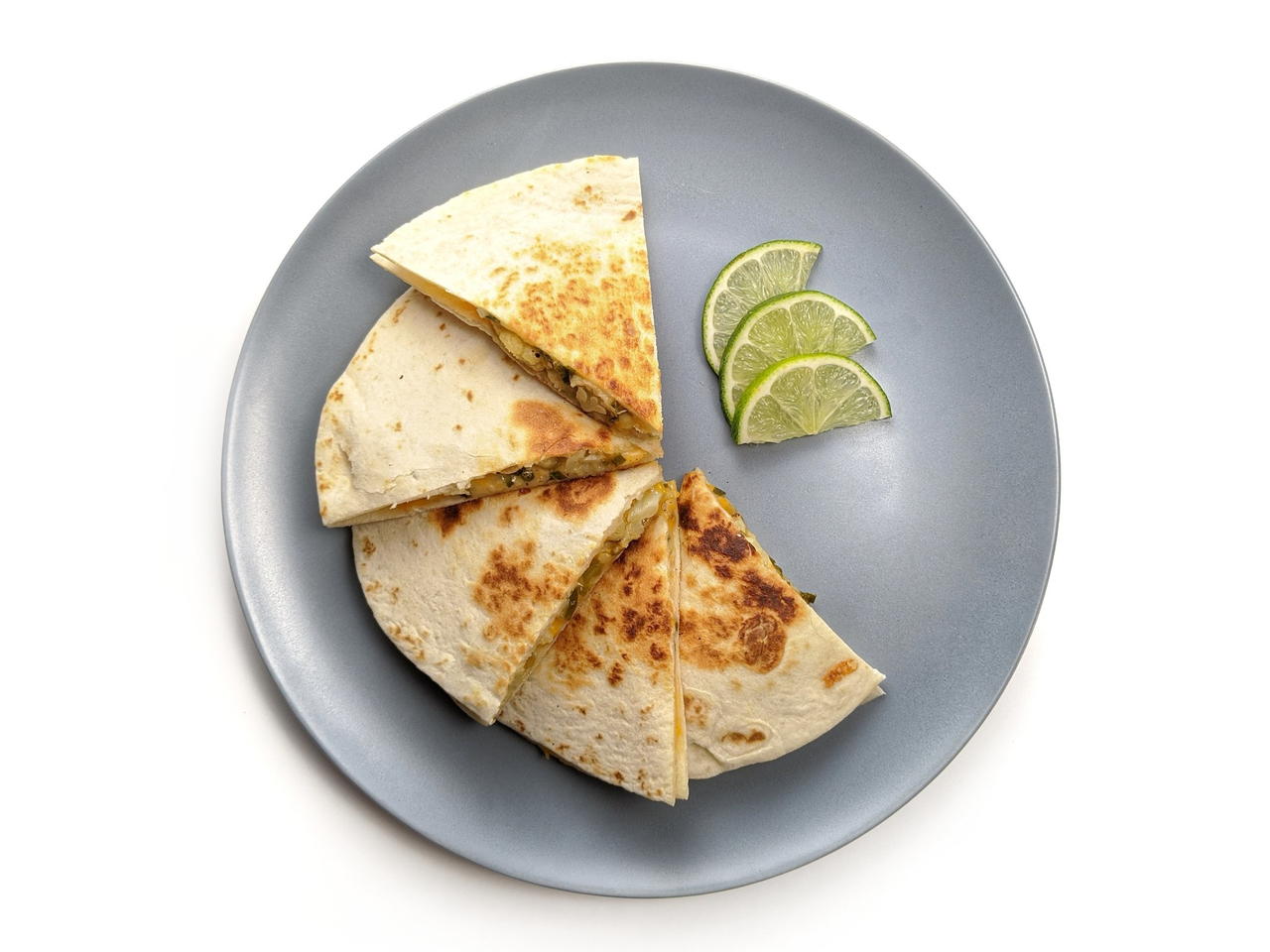 Cook the opposite side. Once the cheese is melted and both the top and bottom tortillas are golden brown, transfer to a cutting board to slice into wedges.