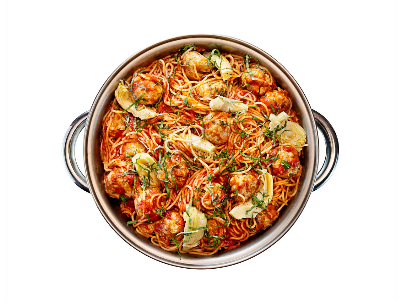 Serve meatballs on their own or with pasta and more chopped artichokes