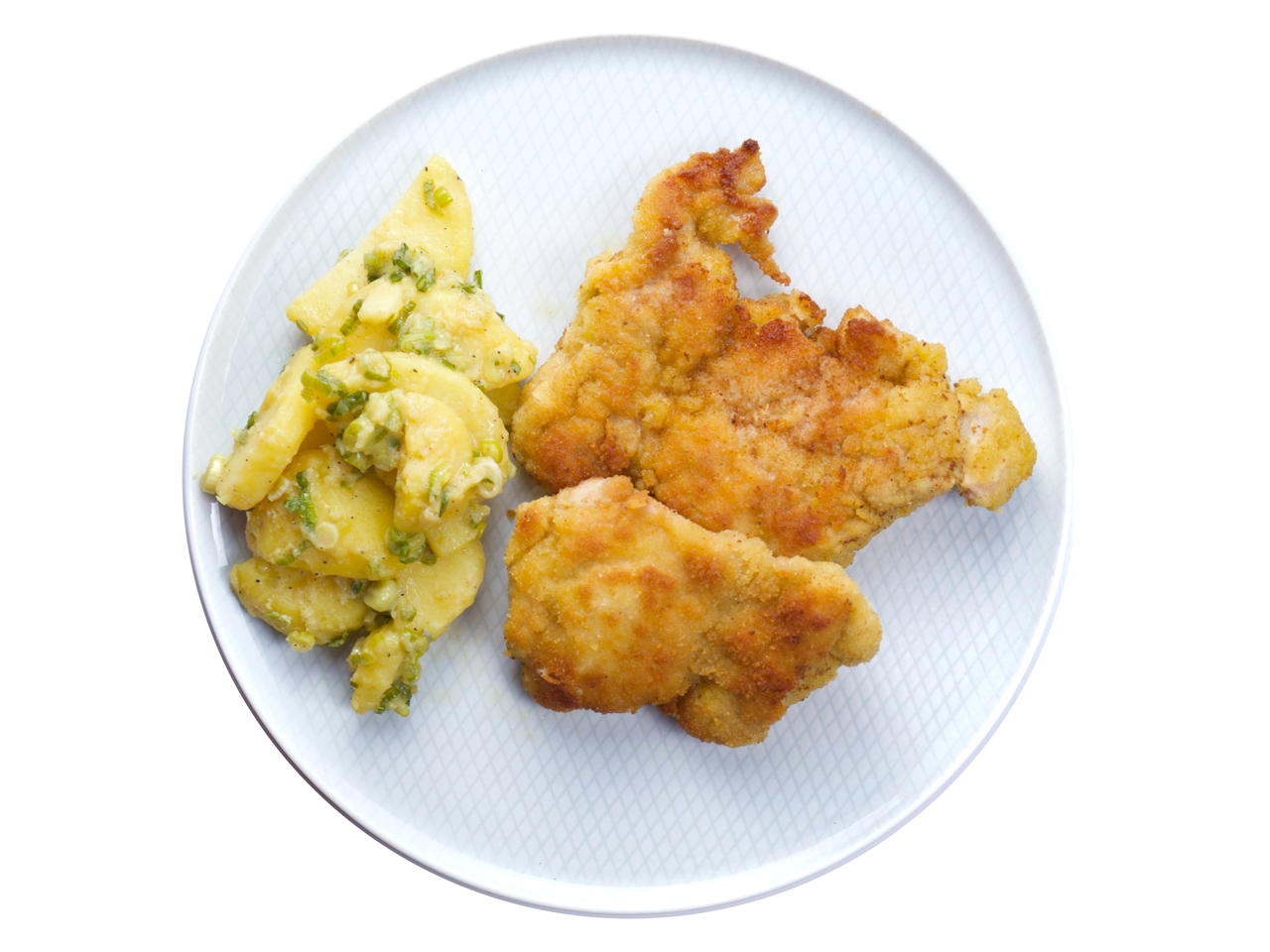 Place breaded chicken thighs gently in the hot oil. Cook until browned on one side. If your pan does not heat evenly, you may need to rotate the cutlets half way through cooking.