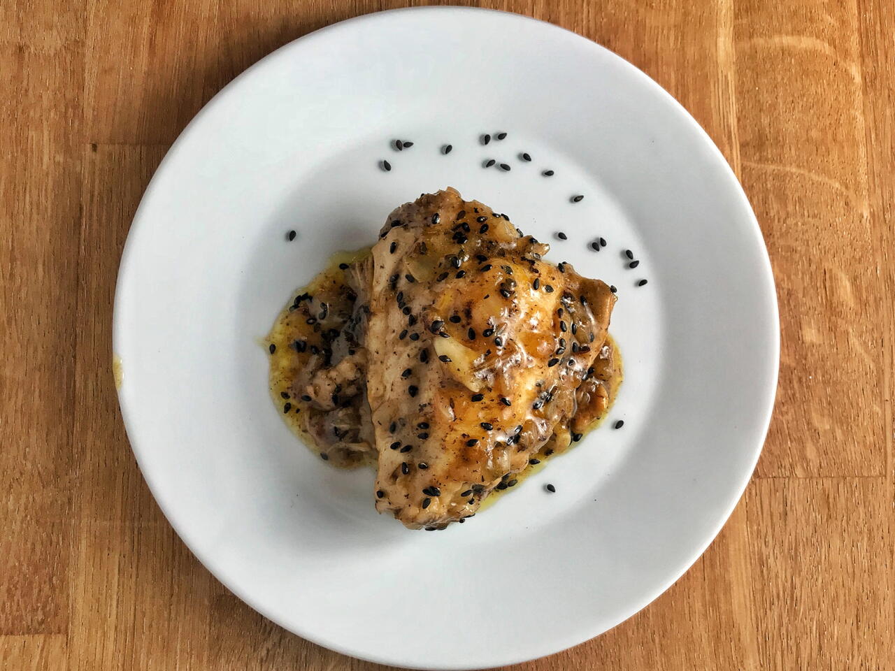 Add 1 tbsp olive or sesame oil to a hot pot and brown the chicken. Add all marinade ingredients to the same pot