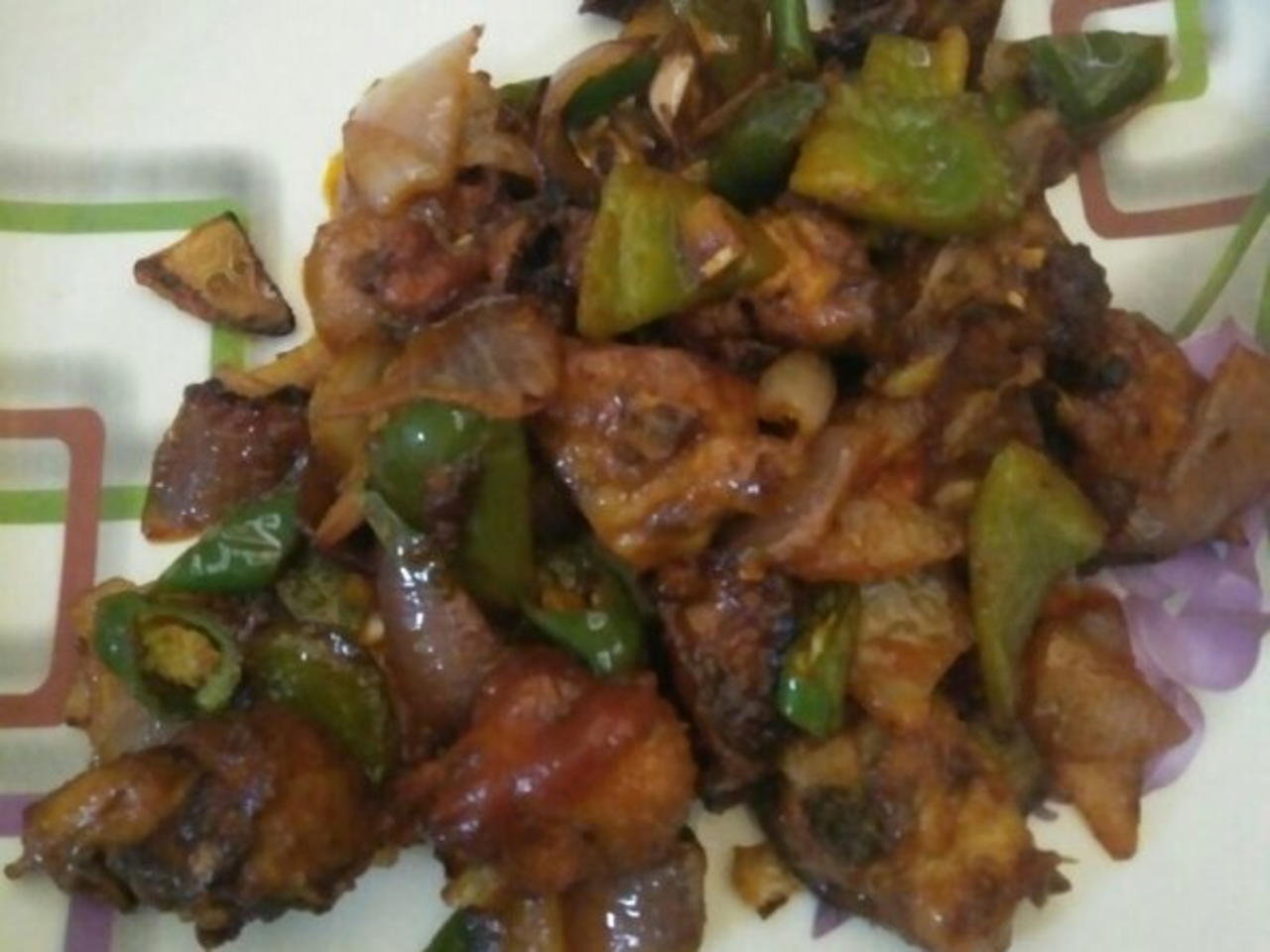 Now fry the chopped garlic ginger after they turn golden brown add onions and capsicum.