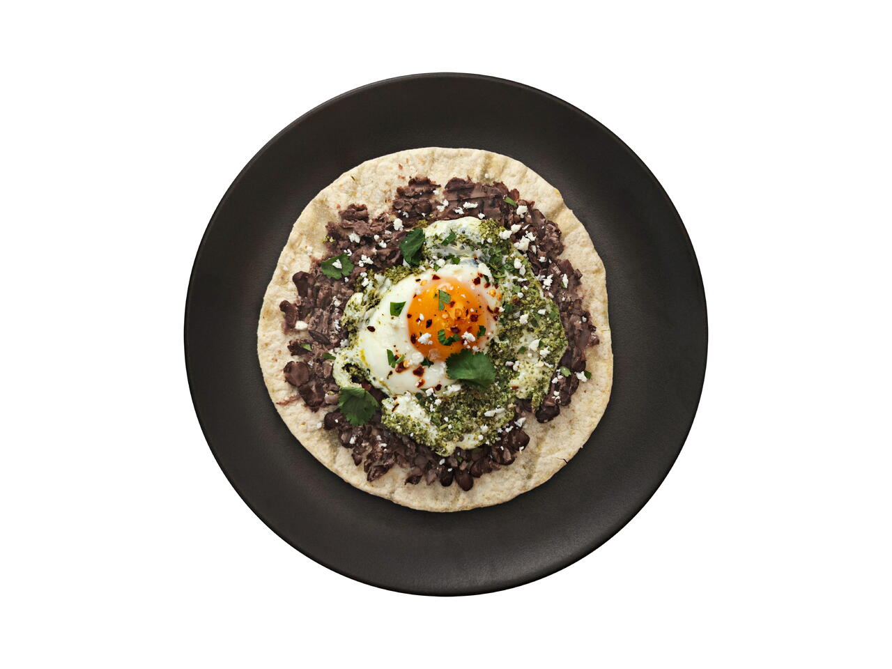 The TikTok famous pesto egg has a new twist with an egg cooked in cilantro pesto and added on top of a warm tortilla with beans!