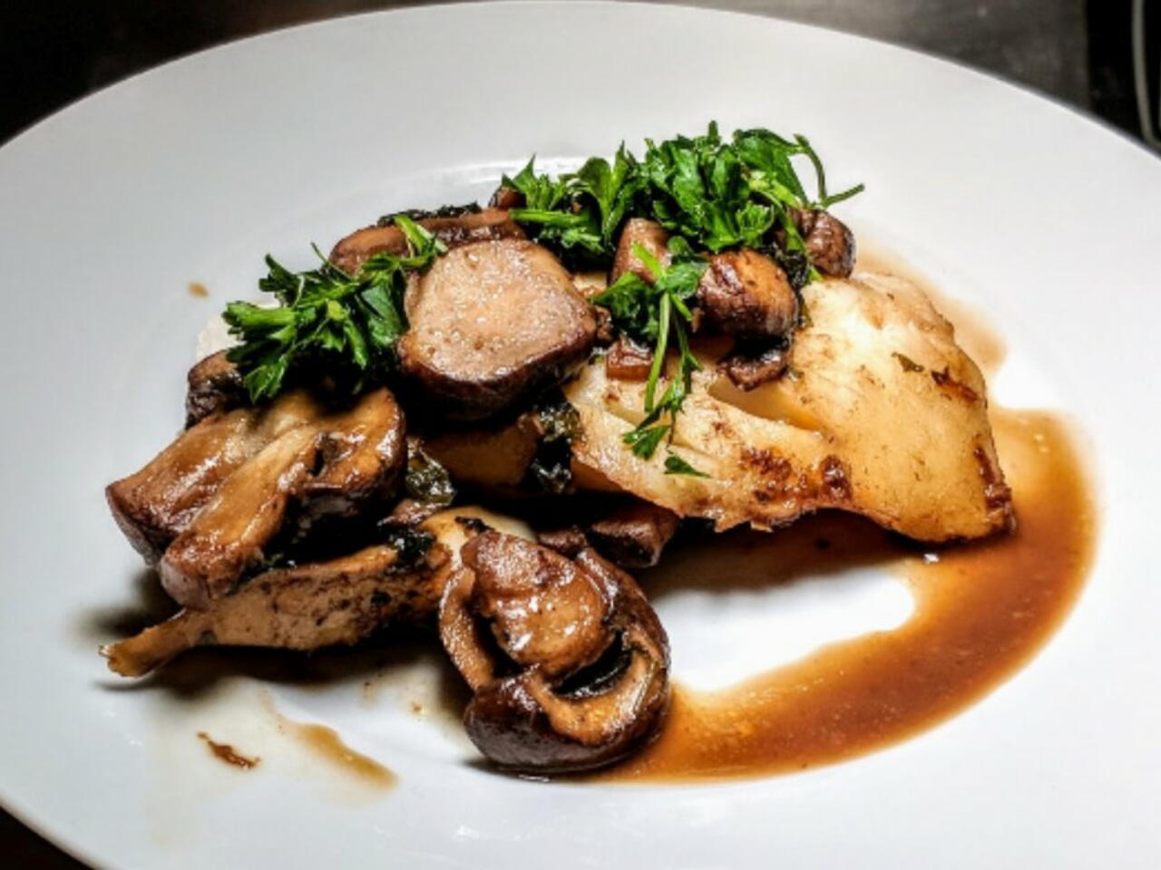 Add filets. Spoon mushrooms and sauce on top of filets. Cover and cook for 5-8 minutes at medium low heat.