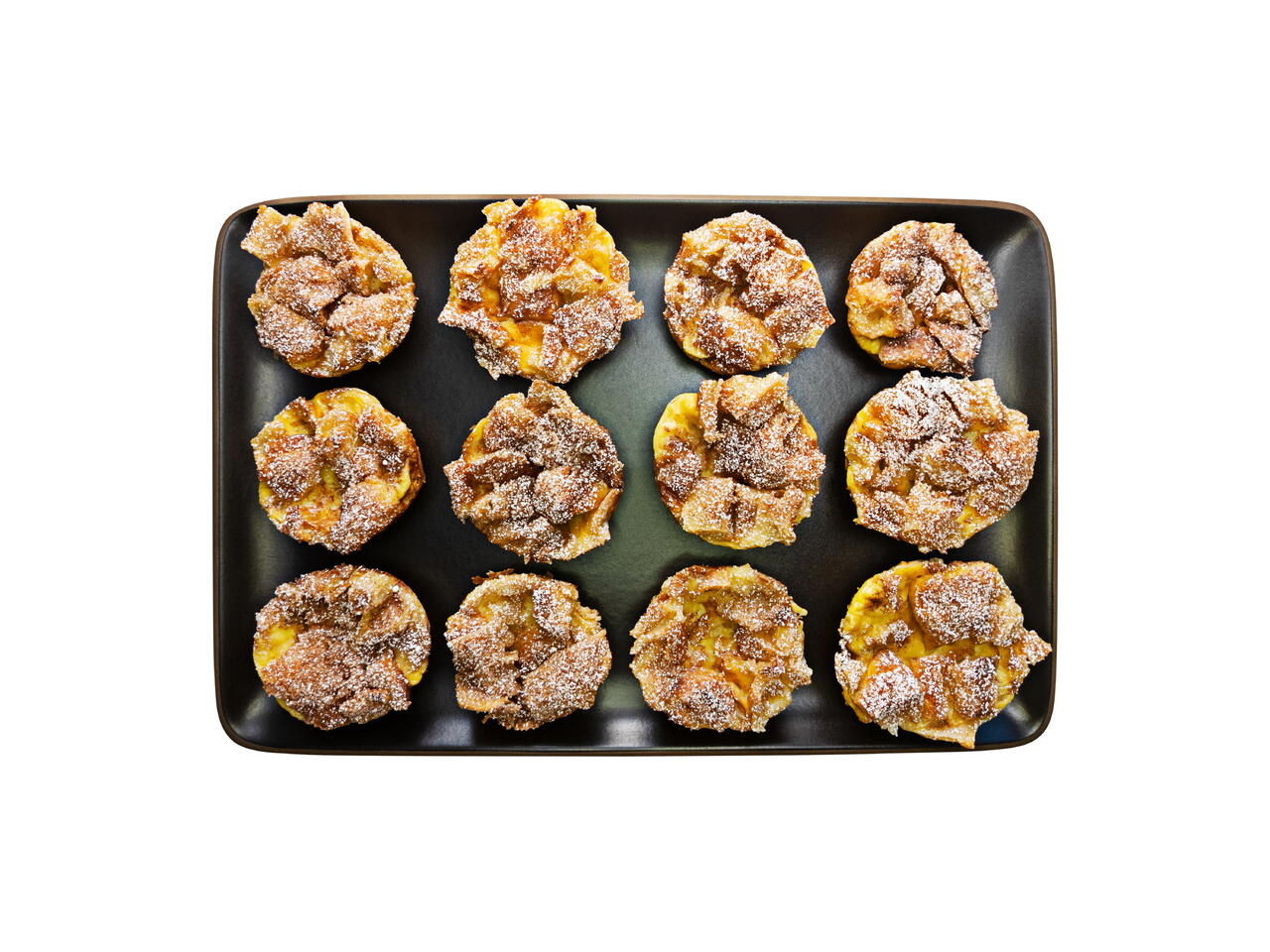 Bake the french toast cups for about 15- 20 minutes or until puffed up in the center and golden brown. Let cool at least 10 minutes before removing from the pan.