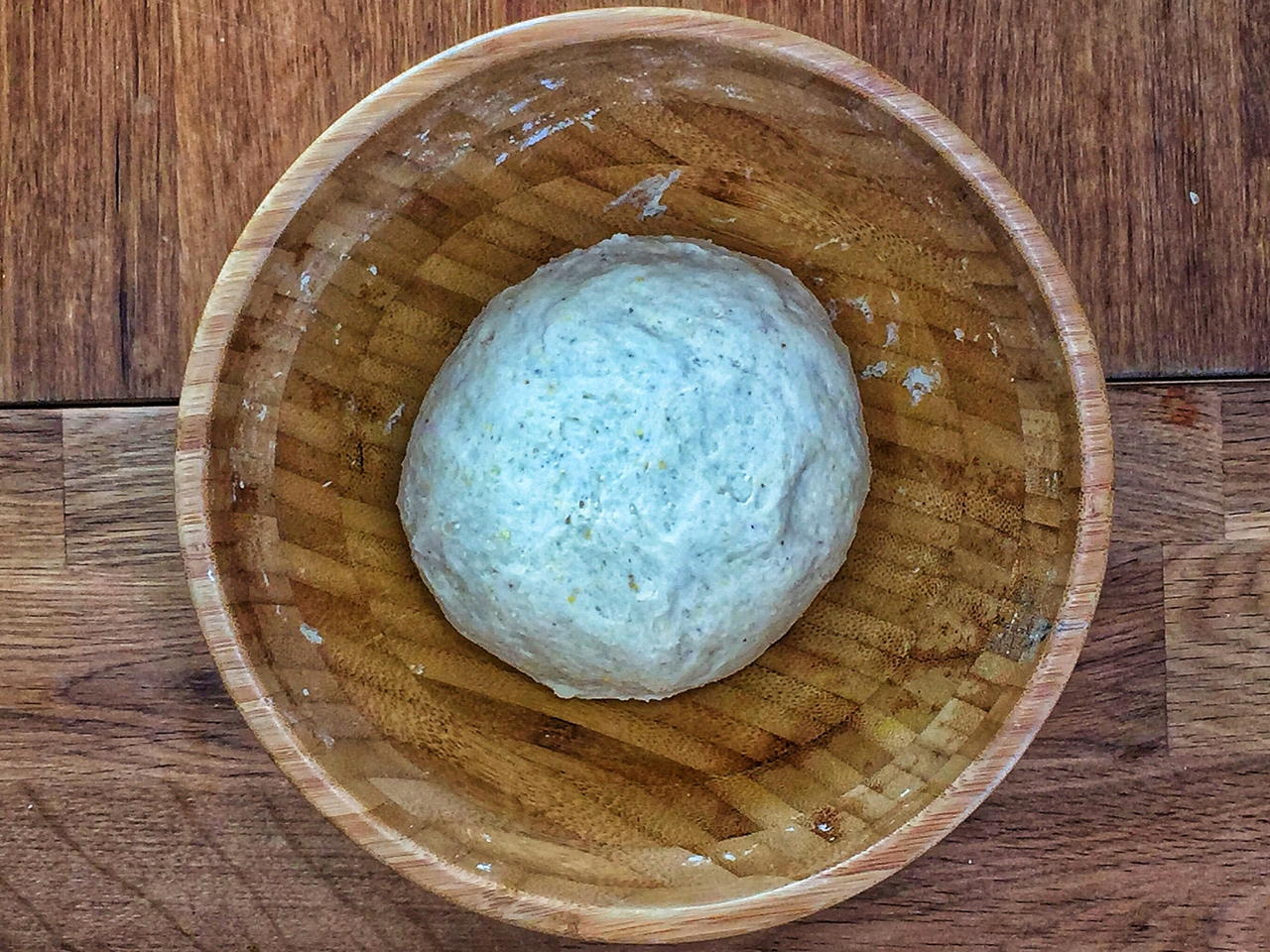 Fold the dough in on itself and press it down several times while rotating the bowl in order to collect any flour that has been stuck to the sides of the bowl.