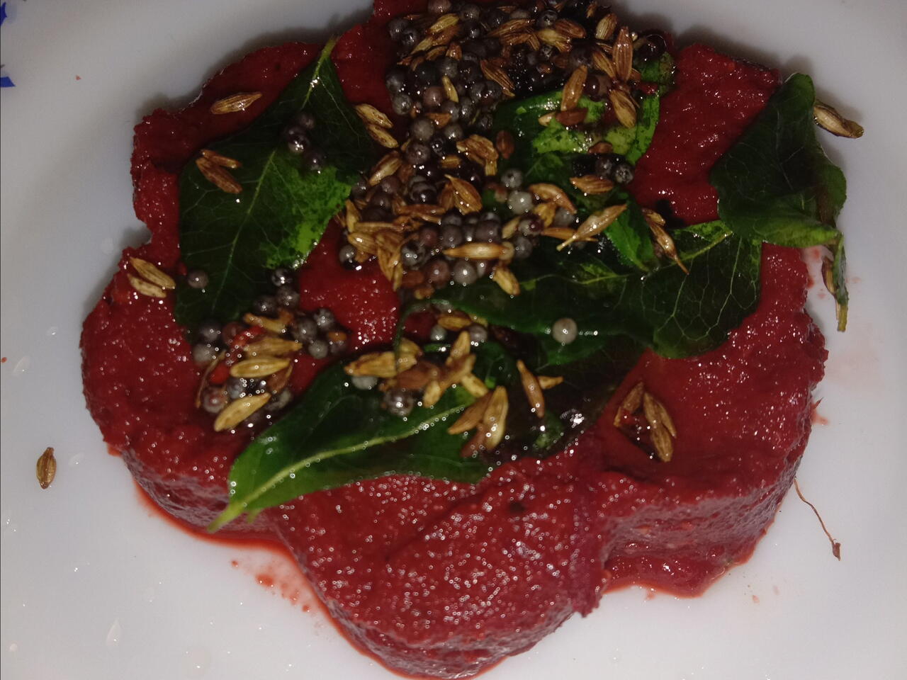 Take small pan to heat add 1tsp oil, mustard seeds, cumin seeds and curry leaves. Once a crackles pour this over the beetroot chutney.