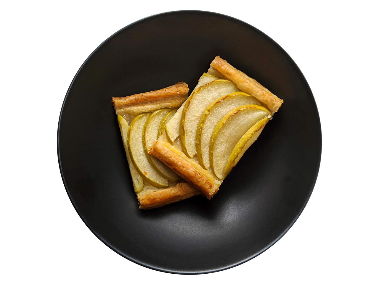 Brush the pastry with butter and add the apples to the top overlapping one another.