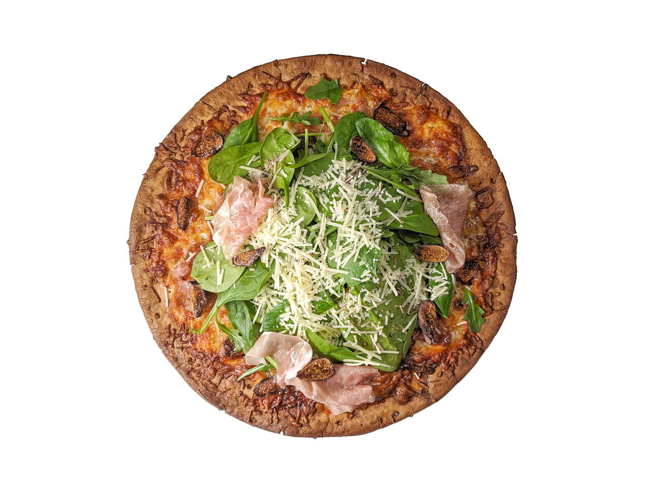 This combo is so tasty. The sweet figs, the salty prosciutto, and the tangy arugula and spinach salad on top creates a satisfying meal. If fresh figs are in season, use those, otherwise dried figs are great too!