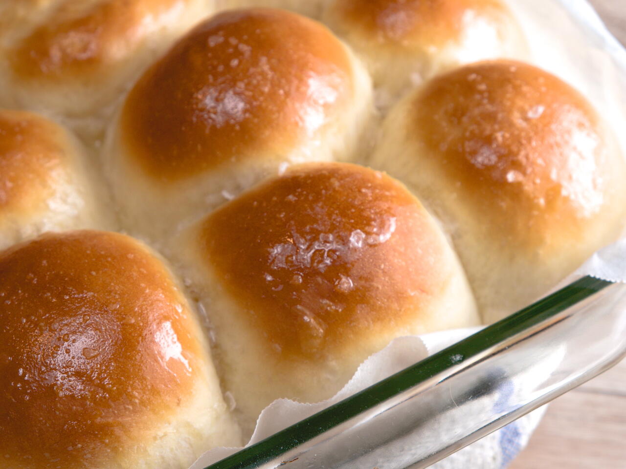 Place a piece of parchment in a baking dish. Spray lightly with nonstick spray. This batch fits perfectly in an 8" square baking dish. The rolls bake best when they're crammed together. But you should be okay using an 8" or 9" round dish or just cramming the dough balls together in a larger dish.