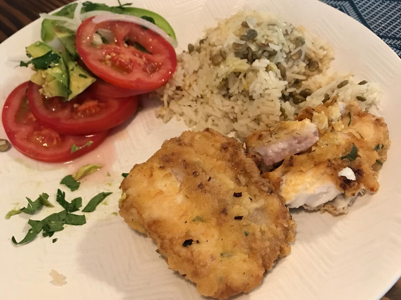 After marinating for 1 hour, prepare the flour and eggs for coating the fish. I like to season the egg with parsley and salt, flour with black peppers.
