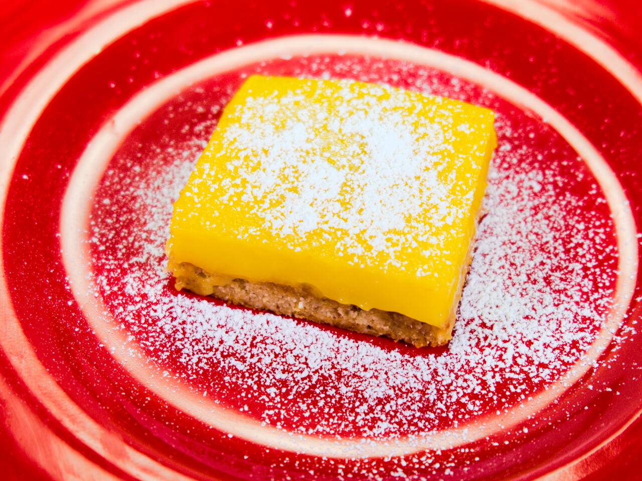 One of those few baked goods that can truly be as reliably good as its glutinous cousins. Almond meal yields a perfectly acceptable shortbread crust with a flavor that pairs well with lemon. The lemon layer takes a little more care and attention without flour, but yields a richer color, a silkier texture, and an all around superior product.