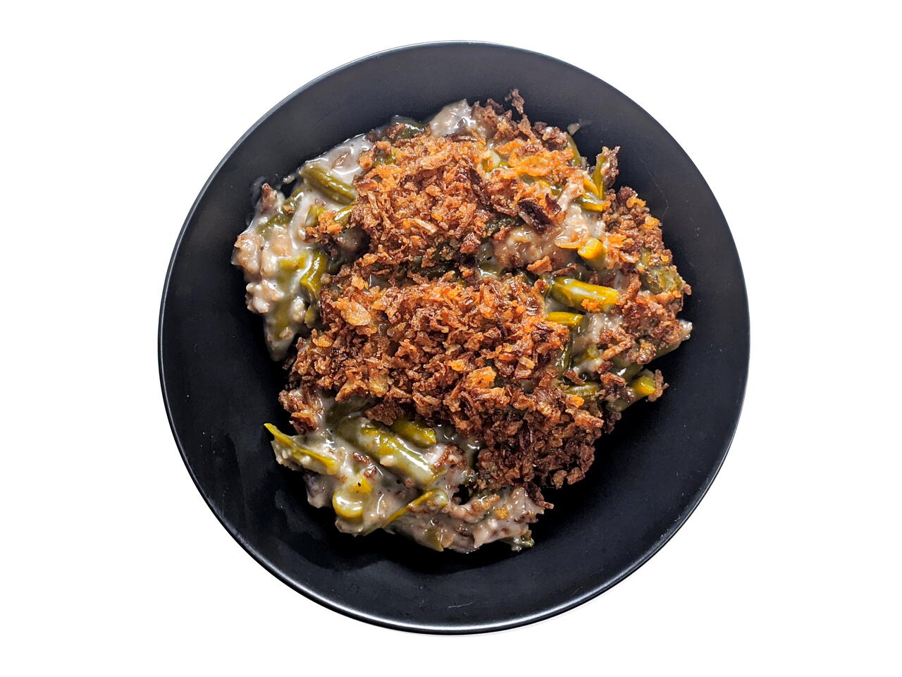This recipe is a Thanksgiving classic! I love the crunch of the crispy onions and the creaminess of the mushroom soup.