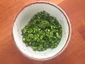 Cut the jalapeño very finely. This way they'll mostly disappear in the cooking process. A fine dice like this is also known as a brunoise. The jalapeño here is just to add a little extra heat. Skip it if you aren't a fan of spicy food.