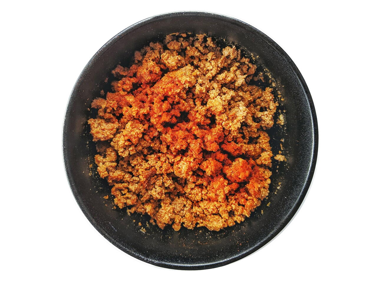 Continue cooking the ground beef, stirring frequently, for about 5 more minutes, or until the spices are toasted and the beef is browned through.
