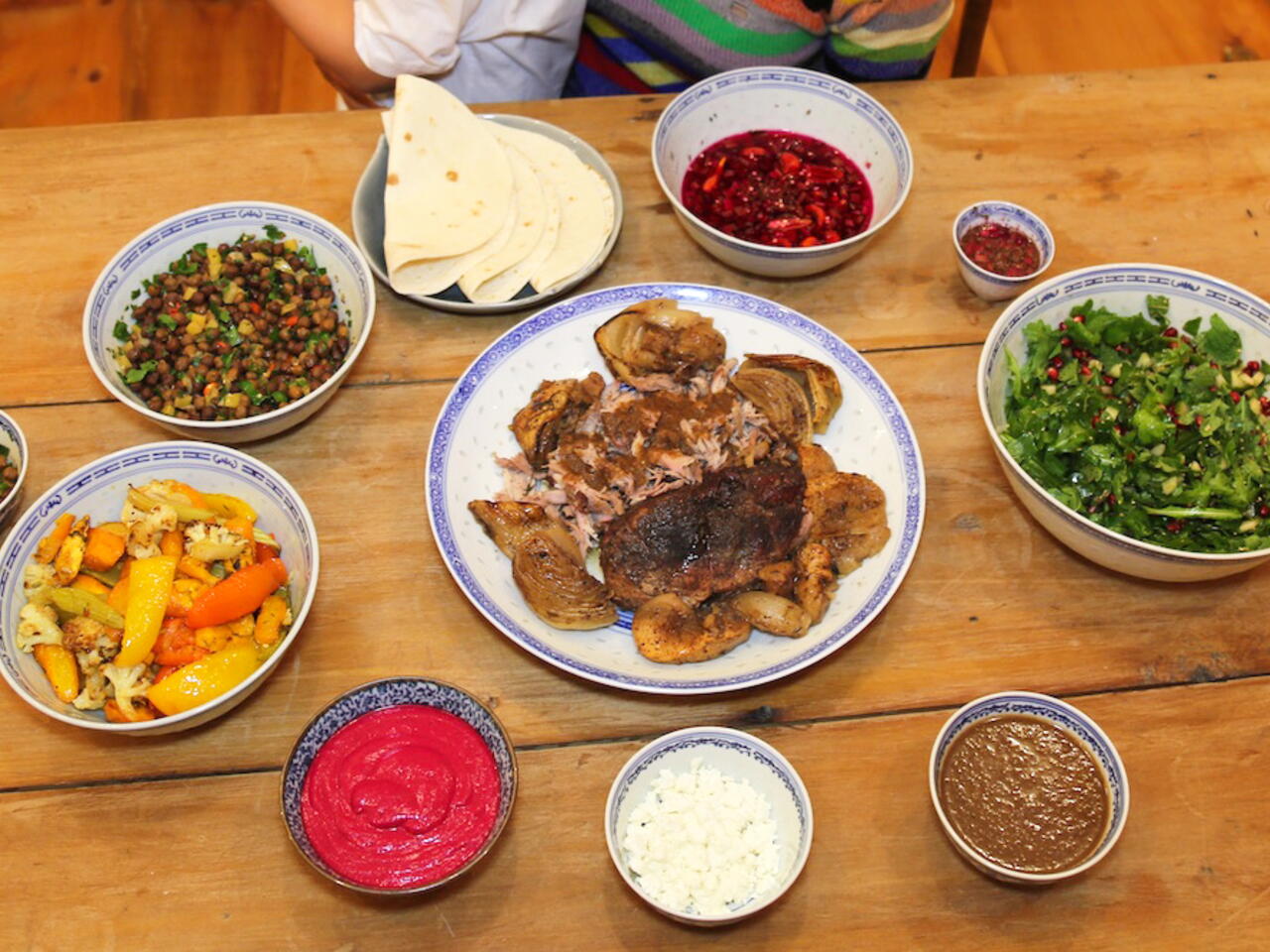 In a large bowl, toss the arugula with the English cucumber, pomegranate seeds, mint leaves, cilantro, and sesame seeds. Dress with desired amount of olive oil and balsamic vinegar (I do about two tablespoons of each). Season with Hawaiian pink salt to taste, and serve.