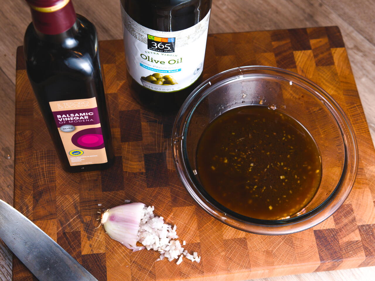 Combine shallot with balsamic vinegar.